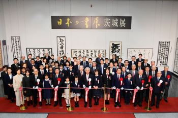 開会式で、同振興会長の渡辺勝茨城新聞社長は「先人の息吹を感じる書作品から、未来に続く子どもたちの書まで幅広く展示した。十分に堪能していただきたい」とあいさつ。吉澤石琥理事長は「今の茨城を飾る言葉でいえば最高の展覧会」と力強く述べた。幕開けを祝い、主催者と岩下泰善副知事ら来賓代表がテープカットを行った。